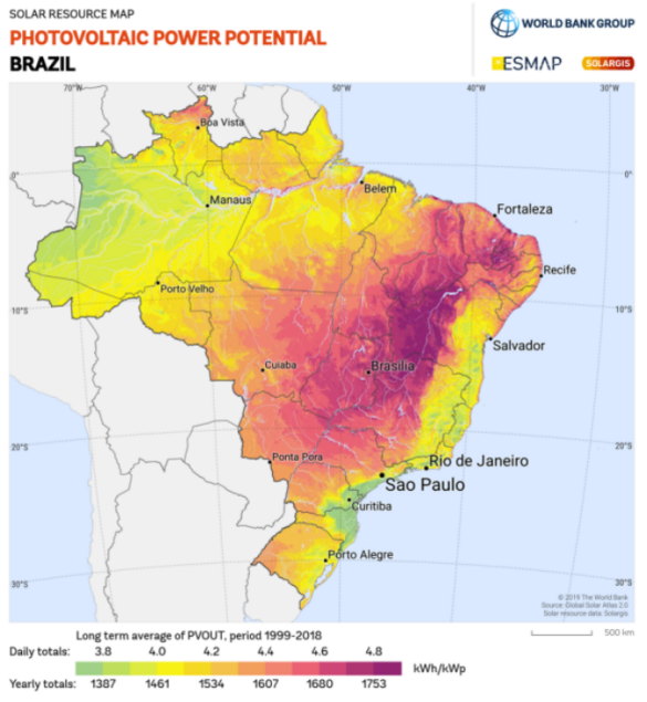 巴西土地面積較大,超850萬平方公里。巴西全國約有9300萬個潛在可用屋頂,到目前為止,只有一小部分安裝了屋頂光伏系統(tǒng)。