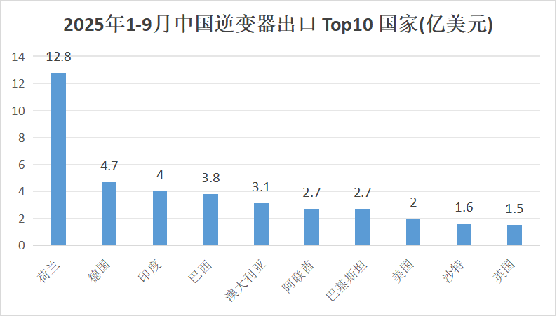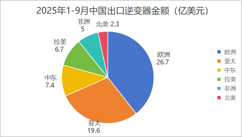 中國海關總署最新發布的2025年9月份逆變器出口數據顯示:2025年1-9月中國海關出口逆變器累計3832萬臺,其中9月出口341萬臺,環比同比均有所下降。