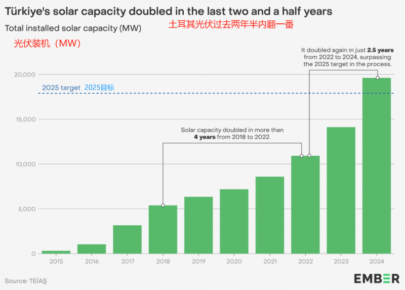 土耳其地處亞歐交界,日照資源極佳,年均日照時長超2700小時。政府也是雄心勃勃,計劃到2035年將風光裝機提升至120GW。
